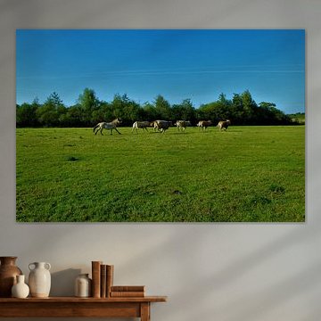 Ornate horses as wall art makes the room elegant and character. Buy a horse painting on large photo wallpaper to make a statement. Or buy horse art prints on canvas with a golden frame or as a glass painting. Our diverse wall art collection consists of paintings of horses on the beach, colourful horse paintings, modern abstract horse paintings and beautiful horse posters for the children's room.