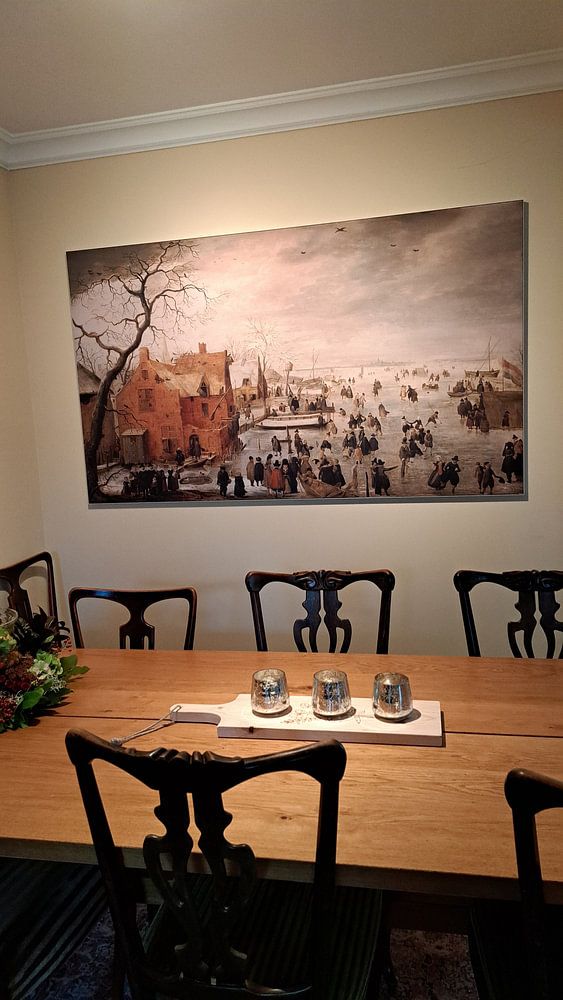 Your bedroom is a good spot for Ice artworks, where the blue and grey tones help create a restful atmosphere. The calm mood supports relaxation, while the mysterious elements add visual interest above your bed or on the wall opposite your window. Choose Poster for an accessible way to bring these cool tones into your sleeping space, or opt for Canvas if you prefer a frameless look. The taupe and mauve accents blend naturally with bedding in neutral shades.