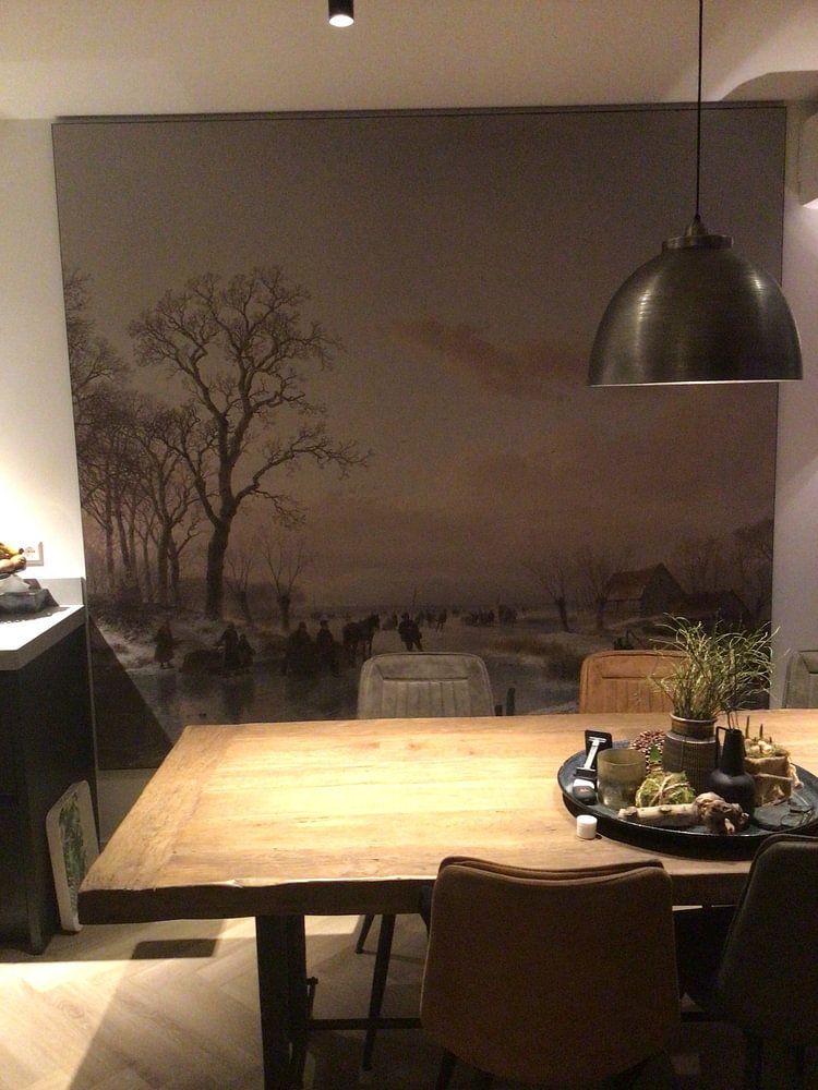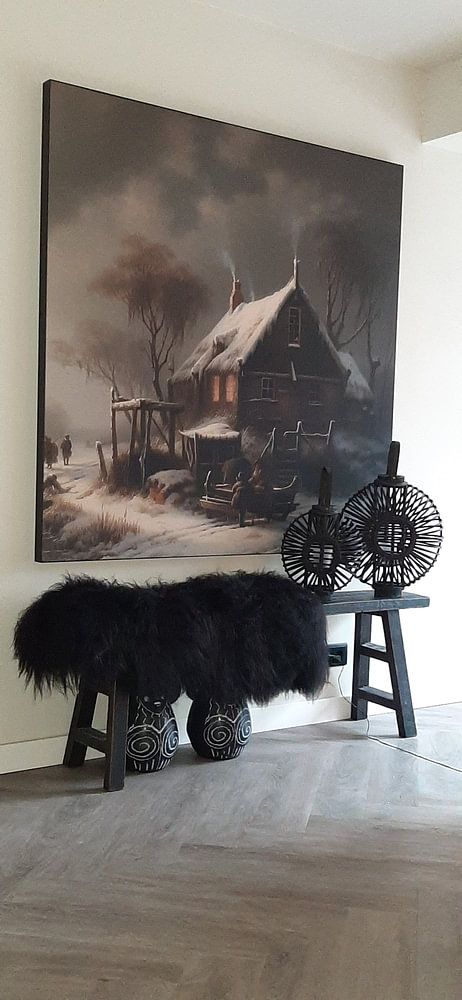 Wintry scenes work beautifully when you balance cool and warm elements in the room. Grey and blue tones feel fresh beside natural wood furniture, warm textiles, or brass details. The grey and taupe palette in Winter Song pairs well with warm beige cushions or wooden frames to create a welcoming, layered look.