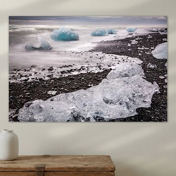 The Ice collection brings calm and mysterious qualities to your interior, making these artworks easy to pair with contemporary decor. Combine them with soft textiles in natural tones or add green plants to create contrast against the cool color palette. A gallery wall arrangement works well when you mix portrait and square formats together. Try grouping several Ice artworks with minimal frames to create a cohesive, powerful statement that draws the eye without overwhelming your space.