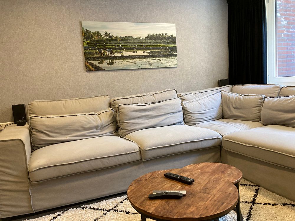 Rich teal and deep anthracite create striking depth when placed against lighter walls. These cooler tones add calm contrast to warm wood finishes or neutral interiors. You'll find this color combination in Rain down on me, where the lush greens and grey tones bring a refreshing, natural balance to contemporary spaces.