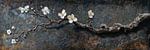 Old wood bonsai almond blossom still life branch dark panorama by Digitale Schilderijen on canvas