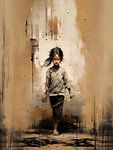 Japanese girl banksy wabi sabi japandi style neutral colours by Dream Designs art work on ArtFrame