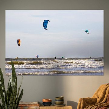 Eager to get the wind through your hair again and bring the beach atmosphere into your home? Buy a beautiful kitesurfing photo prints on acrylic glass. Or buy impressive action photography of a kitesurfer in the North Sea. You will also find several art prints of kitesurfers in action in our kitesurfing wall art collection. You can buy this kite surf wall art for your wall on canvas, wallpaper, as a glass painting and more.