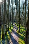 A small path through the forest with long shadows of the trees in Zuid Limburg by Hein Fleuren on canvas