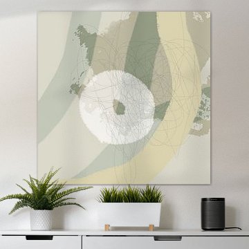 Abstract pastel art in Wild Wonder colors in green, beige, white by Dina Dankers