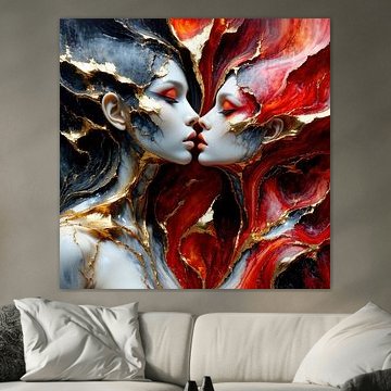 Buy romantic paintings and wall art prints full of love in this love art collection. Perfect for a romantic gift or for your family living room. Our love wall art collection is diverse, so everyone can find an art print to fit their wall. Order love art in abstract modern style or go for photography of true romance. You can order your favourite artwork on high-quality HD metal, indoor wallpaper, canvas or luxury glass.
