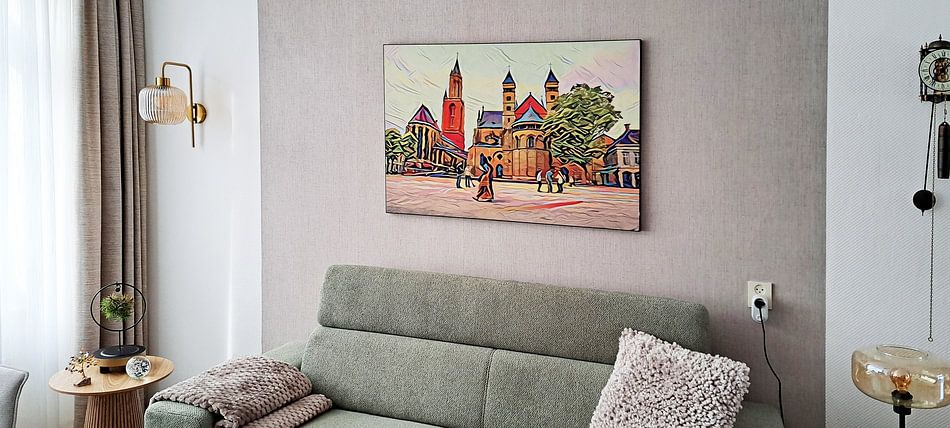 Maastricht's historic bridges and colorful squares translate beautifully into wall art. Bold brushstrokes capture the city's warm character, while vibrant palettes bring energy to any space. From impressionistic cityscapes to architectural details, these artworks suit modern and classic interiors alike. The Maastricht painting with Old Bridge / Saint Servatius Bridge and view of Vrijthof shows how color can transform a familiar view into something joyful.