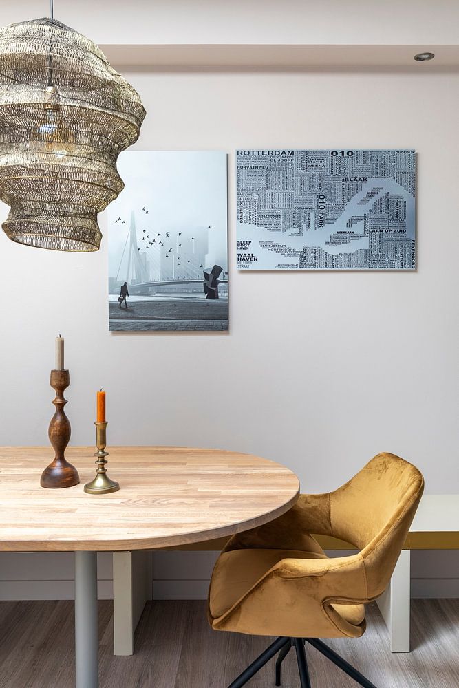 Beige and white dominate the colour palette across these artworks, making them easy to pair with natural materials. The beige tones in Rotterdam City Map | Concrete look complement wooden furniture, linen textiles, and warm metal accents. These earthy shades create a relaxed backdrop that works in both modern and traditional interiors.