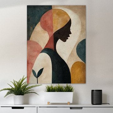 Contemplative artworks feel most at home in calm, personal rooms. Hang them at eye level - around 145 - 150 cm from the floor to the centre of the artwork - so you can appreciate the detail without strain. Female portrait | Woman suits a bedroom or reading corner where you'll pause and reflect.