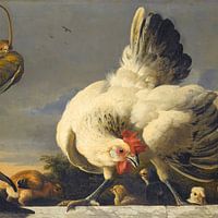 Rooster and chickens in a landscape - Melchior d'Hondecoeter