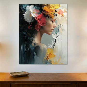Expressive faces work beautifully in rooms where you want energy without clutter. The bold contrasts and colour splashes in Black & white with flower colour splash bring life to minimalist bedrooms or hallways with neutral walls. Let the artwork be the focal point - keep surrounding furniture simple and let the portrait do the talking.