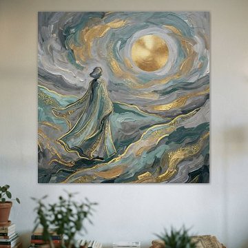 Moon art works beautifully as a standalone statement or paired with complementary pieces to create depth. The calm and mysterious moods in this collection combine well with nature photography or abstract works in similar tones. Try building a gallery wall where moon imagery anchors the arrangement, balanced by smaller artworks in blue, teal, or taupe. You can also pair moon prints with soft textiles like linen throws and low lighting to enhance the dreamy atmosphere they naturally bring to a room.