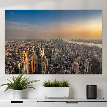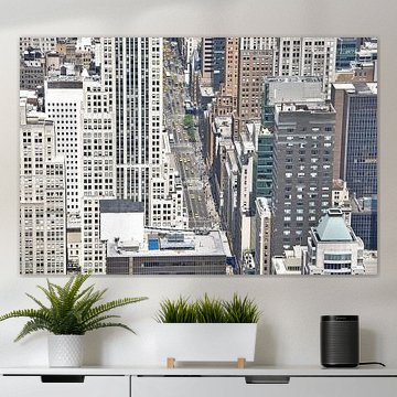 The city that never sleeps. Buy a New York art print and bring the Big Apple into your home. Order a glass painting of the great New York skyline in black and white. Or a poster of street photography from Manhattan. You can also admire the Brooklyn Bridge as a colourful painting. The New York wall art collection can be printed on various materials and in different sizes.
