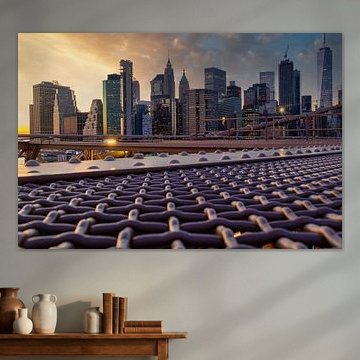 The city that never sleeps. Buy a New York art print and bring the Big Apple into your home. Order a glass painting of the great New York skyline in black and white. Or a poster of street photography from Manhattan. You can also admire the Brooklyn Bridge as a colourful painting. The New York wall art collection can be printed on various materials and in different sizes.