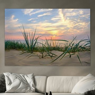 Travelling far away for a beach holiday? No need! The Dutch coast is beautiful as a glass painting or photo wallpaper. Buy a piece of coast on your wall, or order a canvas painting with sea and beach at Art Heroes. A beautiful sunset, or a surfer enjoying rough weather. Bring peace and relaxation into your home with beautiful North Sea beach posters, wallpaper, and canvas.