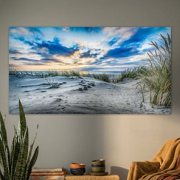 Travelling far away for a beach holiday? No need! The Dutch coast is beautiful as a glass painting or photo wallpaper. Buy a piece of coast on your wall, or order a canvas painting with sea and beach at Art Heroes. A beautiful sunset, or a surfer enjoying rough weather. Bring peace and relaxation into your home with beautiful North Sea beach posters, wallpaper, and canvas.