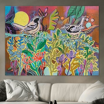 Buy cute wall art for the children's room in our children's room art collection. In this collection, you will find trendy wall art for your lovely child. View canvas paintings of jungle animals and plants. Or order colourful posters for the children's room with fun illustrations. Want to go big for? Choose cheerful wallpaper. You can order the poster, wallpaper, or painting to your preferred sizes, so it will never be too big or too small.