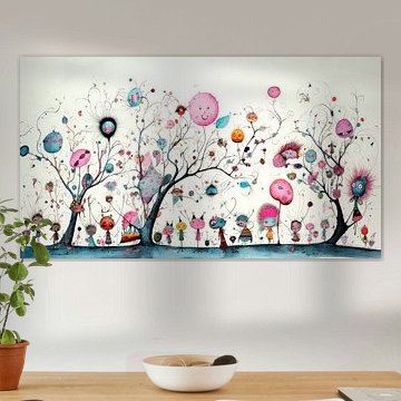 Buy cute wall art for the children's room in our children's room art collection. In this collection, you will find trendy wall art for your lovely child. View canvas paintings of jungle animals and plants. Or order colourful posters for the children's room with fun illustrations. Want to go big for? Choose cheerful wallpaper. You can order the poster, wallpaper, or painting to your preferred sizes, so it will never be too big or too small.