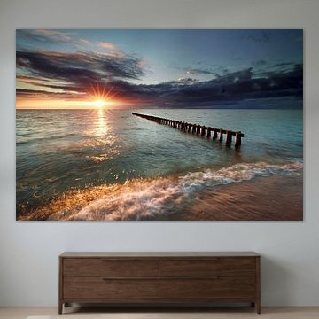 Oceans and seas offer you beautiful views. Art Heroes' collection is a collection that is diverse, and has a view that fits on any wall. Buy a painting of the sea, a beach painting or an abstract sea painting. Do you like warm colours? Then buy a sunset sea painting. Or do you like rough nature more? Then buy a painting or photo of storms at sea. You can buy the sea paintings and photo prints as round wall decoration, on canvas or as photo wallpaper.