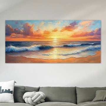 Oceans and seas offer you beautiful views. Art Heroes' collection is a collection that is diverse, and has a view that fits on any wall. Buy a painting of the sea, a beach painting or an abstract sea painting. Do you like warm colours? Then buy a sunset sea painting. Or do you like rough nature more? Then buy a painting or photo of storms at sea. You can buy the sea paintings and photo prints as round wall decoration, on canvas or as photo wallpaper.