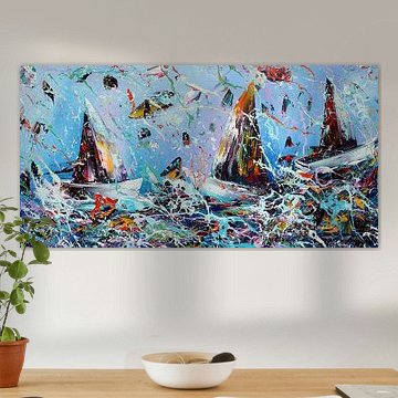 Oceans and seas offer you beautiful views. Art Heroes' collection is a collection that is diverse, and has a view that fits on any wall. Buy a painting of the sea, a beach painting or an abstract sea painting. Do you like warm colours? Then buy a sunset sea painting. Or do you like rough nature more? Then buy a painting or photo of storms at sea. You can buy the sea paintings and photo prints as round wall decoration, on canvas or as photo wallpaper.