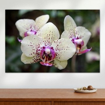 The delicate and elegant mood of orchids pairs wonderfully with other refined botanical elements and soft textiles in your space. Create a serene gallery wall by combining orchid artworks with neutral abstract pieces, or place a single large orchid artwork as a calm focal point in busy living areas. Style your orchid art alongside real potted plants, linen cushions, and ceramic vases to reinforce the natural, tranquil atmosphere these artworks bring. The calm elegance of orchids also works beautifully in bedrooms when paired with soft lighting and natural fiber rugs.