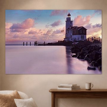 The Paard van Marken Lighthouse Art Collection captures the romantic and iconic presence of the lighthouse on the Markermeer in the Netherlands. This collection features paintings, photographs, and illustrations that depict the distinctive white tower, surrounding waters, and changing skies. Each artwork highlights the serene and timeless beauty of this historic lighthouse, which has guided sailors since 1839. Ideal for fans of maritime landscapes and Dutch icons, this collection offers a calming and inspiring addition to any space. The artworks are available in various sizes and on high-quality materials like canvas, ArtFrame, poster, and more.