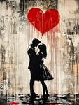 The first kiss | Street art graffiti in Banksy style by Frank Daske | Foto & Design on ArtFrame