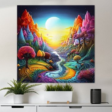 Order a colorful and alienating piece within the psychedelic art style for an unforgettable touch to your interior. Feel the freedom and experimental nature of this movement. Order a piece that expands the mind and stimulates the senses. Grand on wallpaper, ArtFrame, or refined on canvas. Customize your favorite on various materials and dimensions.