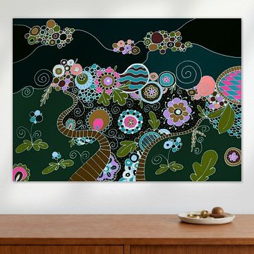 Order a colorful and alienating piece within the psychedelic art style for an unforgettable touch to your interior. Feel the freedom and experimental nature of this movement. Order a piece that expands the mind and stimulates the senses. Grand on wallpaper, ArtFrame, or refined on canvas. Customize your favorite on various materials and dimensions.