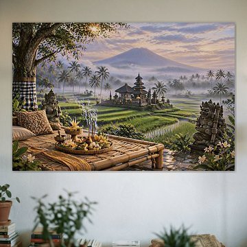 Rice field artworks bring a sense of calm and natural beauty to your space. These pieces work beautifully as part of a gallery wall, where you can mix different formats - combine landscape and square compositions to create visual interest. Pair your rice field prints with natural decor elements like woven baskets, ceramic vases, or potted greenery to enhance the organic feel. The nostalgic and vibrant moods in this collection also complement textiles in earthy tones, such as linen cushions or jute rugs. Let the serene atmosphere of rice field art create a peaceful corner in your home.