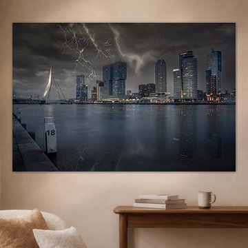Show your love for the city of Rotterdam with a photo print of Rotterdam on your wall. Buy a beautiful poster of the Rotterdam skyline, or buy an impressive photo of the port of Rotterdam on HD metal. Each artwork in the Rotterdam photo collection can be printed on different high-quality materials. Like a painting of the great Erasmus Bridge on canvas. Or a black and white picture of Rotterdam on indoor wallpaper. You can also have this customized to your desired dimensions.
