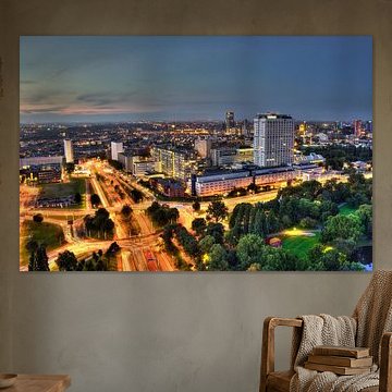Show your love for the city of Rotterdam with a photo print of Rotterdam on your wall. Buy a beautiful poster of the Rotterdam skyline, or buy an impressive photo of the port of Rotterdam on HD metal. Each artwork in the Rotterdam photo collection can be printed on different high-quality materials. Like a painting of the great Erasmus Bridge on canvas. Or a black and white picture of Rotterdam on indoor wallpaper. You can also have this customized to your desired dimensions.