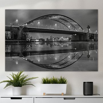 Show your love for the city of Rotterdam with a photo print of Rotterdam on your wall. Buy a beautiful poster of the Rotterdam skyline, or buy an impressive photo of the port of Rotterdam on HD metal. Each artwork in the Rotterdam photo collection can be printed on different high-quality materials. Like a painting of the great Erasmus Bridge on canvas. Or a black and white picture of Rotterdam on indoor wallpaper. You can also have this customized to your desired dimensions.