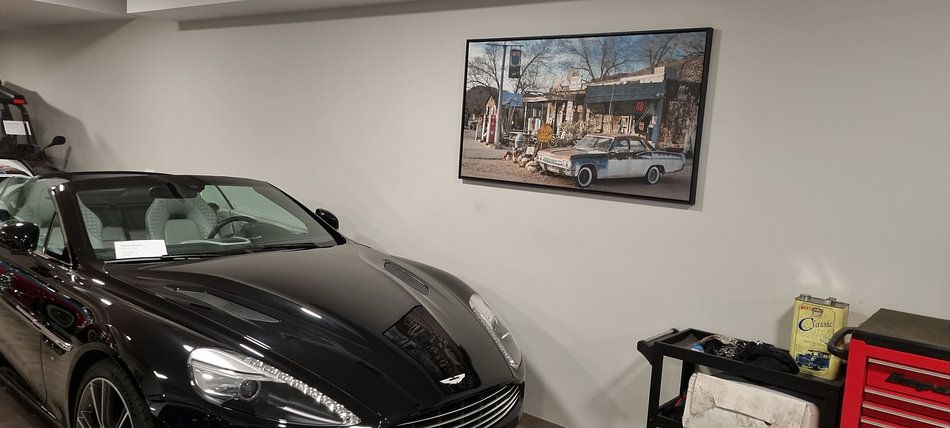 Nostalgic Americana imagery stands out best when it has room to breathe. Pair these artworks with neutral surroundings to let the retro details shine. The vintage mural style in Route 66, mural motorbike and girl works beautifully on a plain wall where the teal and pink tones can catch the eye without competing for attention.