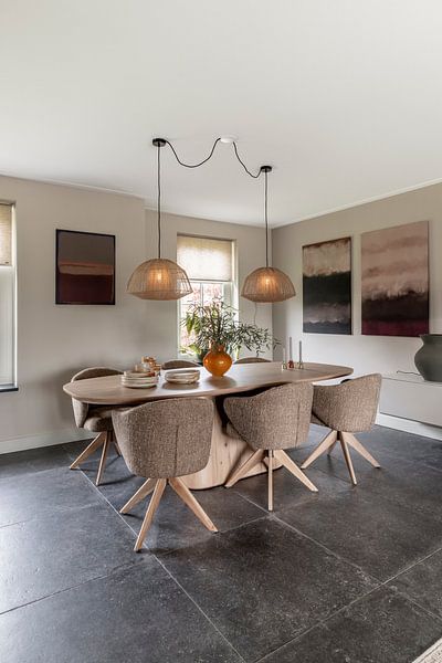 Scandinavian artworks pair naturally with minimalist and Scandinavian interiors. The neutral palette of beige, taupe, brown, and grey works beautifully with light wood furniture and white or off-white walls. Add sage green pieces to introduce a subtle organic accent without overwhelming the space. These earthy tones also complement natural materials like linen, wool, and untreated wood. Try matching grey artworks with concrete or stone surfaces for a modern minimalist look, or combine warm browns and beiges with lighter textiles for a softer feel.