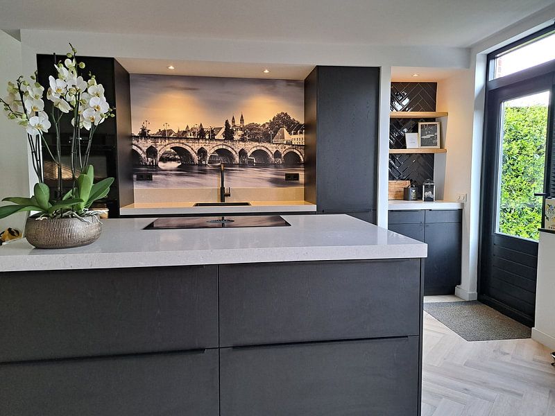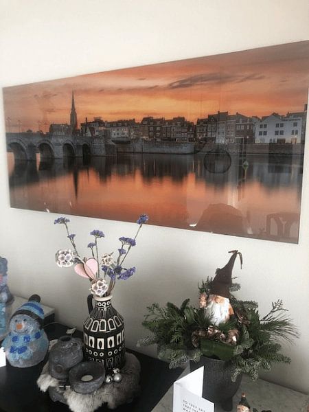The Sint Servaasbrug collection works well in landscape format, which captures the bridge's historic architecture and river setting. A horizontal piece suits spaces above a sideboard or sofa, where the width complements the furniture beneath. For narrower walls, such as hallways or stairwells, a portrait format offers a good alternative that draws the eye upward while highlighting the bridge's details and surroundings.
