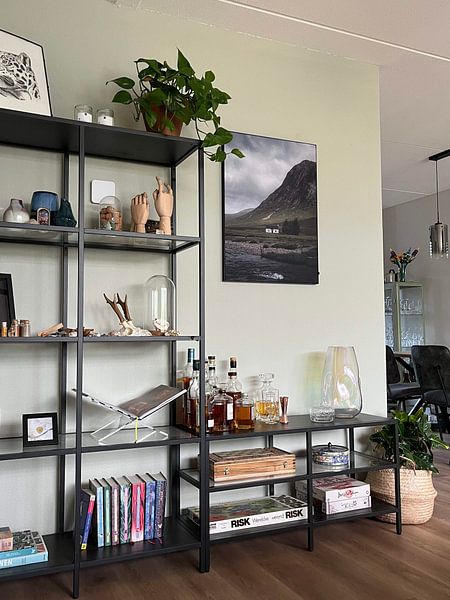 The earthy greens and blues in New horizons - Fine art photo - Scotland create a calm base that pairs beautifully with warmer accent pieces in your room. Try placing this next to furniture or textiles in soft beige, terracotta, or ochre to bring out the natural tones without overwhelming the space.