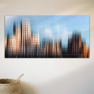 Skyscrapers in major cities worldwide leave their mark on the most impressive skylines, such as the skyline of New York and Hong Kong. Buy the skyline of Rotterdam on glass, for example! Our artists were inspired by all those heights and created paintings of modern architecture, photos of skyscraper architecture and beautiful photo art of skylines on acrylic glass, poster, aluminium, and other high-quality materials. With us, you can buy skyscraper painting online.