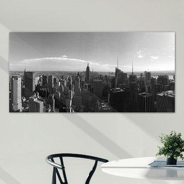 Skyscrapers in major cities worldwide leave their mark on the most impressive skylines, such as the skyline of New York and Hong Kong. Buy the skyline of Rotterdam on glass, for example! Our artists were inspired by all those heights and created paintings of modern architecture, photos of skyscraper architecture and beautiful photo art of skylines on acrylic glass, poster, aluminium, and other high-quality materials. With us, you can buy skyscraper painting online.