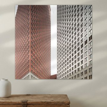 Skyscrapers in major cities worldwide leave their mark on the most impressive skylines, such as the skyline of New York and Hong Kong. Buy the skyline of Rotterdam on glass, for example! Our artists were inspired by all those heights and created paintings of modern architecture, photos of skyscraper architecture and beautiful photo art of skylines on acrylic glass, poster, aluminium, and other high-quality materials. With us, you can buy skyscraper painting online.