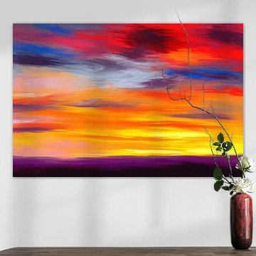 Buy your favourite sunset painting here, behind the sea or an impressive skyline. A sunset on canvas creates a wonderful atmosphere in your home or office. Buy sunset wall art as photo wallpaper as an impressive eye-catcher, or order a sunset painting on canvas. Do you prefer a more chic interior? Then order a high quality a sunset photo print on luxurious glass.