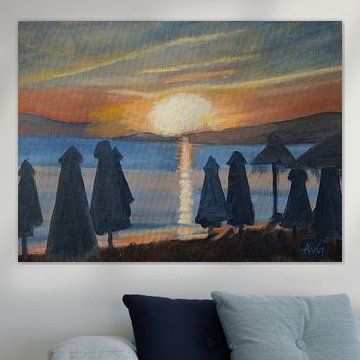 Buy your favourite sunset painting here, behind the sea or an impressive skyline. A sunset on canvas creates a wonderful atmosphere in your home or office. Buy sunset wall art as photo wallpaper as an impressive eye-catcher, or order a sunset painting on canvas. Do you prefer a more chic interior? Then order a high quality a sunset photo print on luxurious glass.