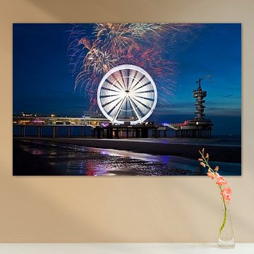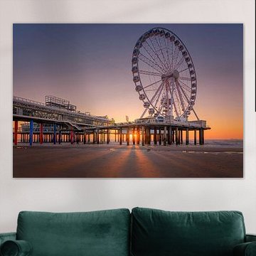 Scheveningen beach with pier and Ferris wheel during sunset by By Marjolein Design