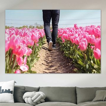 Buy a painting with tulips, and you will bring colour into your home. Wall art prints with flowers brighten up your home. Think of a tulip painting or photo art with tulips on it. If you want something slightly different, think about a modern abstract tulip painting. Want to make a big statement? Then indoor wallpaper of tulips is perfect. Or do something slightly different and buy a round tulip artwork.