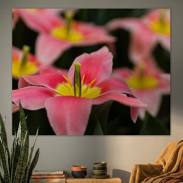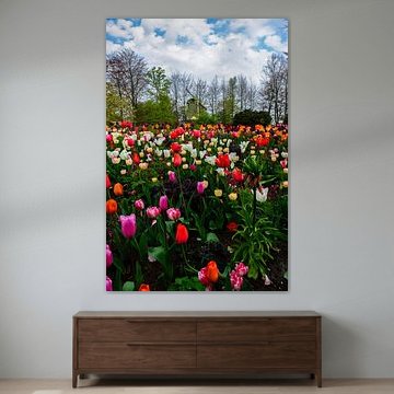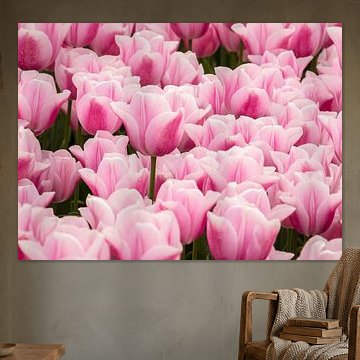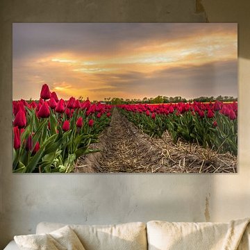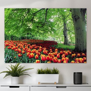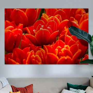 Buy a painting with tulips, and you will bring colour into your home. Wall art prints with flowers brighten up your home. Think of a tulip painting or photo art with tulips on it. If you want something slightly different, think about a modern abstract tulip painting. Want to make a big statement? Then indoor wallpaper of tulips is perfect. Or do something slightly different and buy a round tulip artwork.