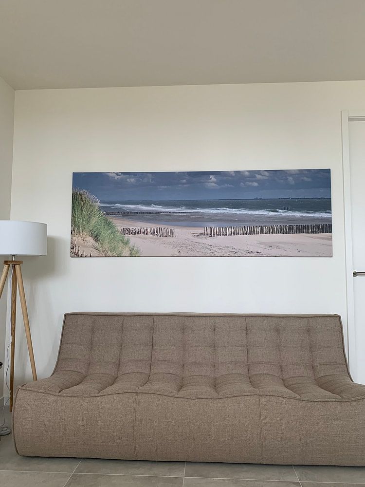 The blue and grey palette of Vlissingen fits beautifully in Scandinavian and coastal interiors. Pair these cool tones with white walls and light wood furniture for a fresh, minimalist look. The brown and taupe accents add warmth to modern spaces when combined with concrete elements or dark metal frames. Mauve touches bring subtle sophistication to classic interiors alongside velvet textiles or brass details. Choose landscape formats to emphasize the horizon-like compositions typical of coastal scenes.