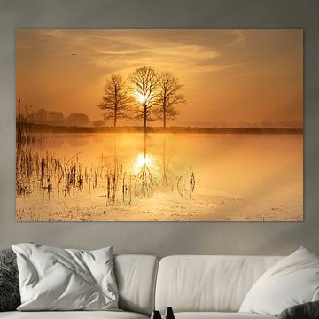 Orange sunrise between three trees reflected in the water by KB Design & Photography (Karen Brouwer)