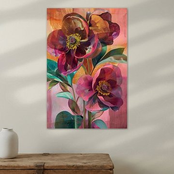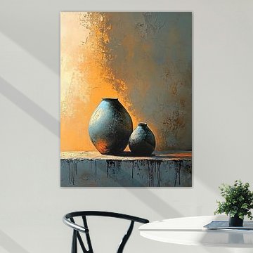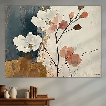 The warm glow wall art collection is filled with artworks with earth tone colours such as orange and terracotta, as well as rich pinks and ochre yellows. Buy beautiful terracotta paintings, or buy paintings with flowers and earth tones. You can buy our warm glow art prints on different high-quality materials. Think of a painting with earth tones on canvas or warm orange indoor wallpaper. Ochre yellow wall art is also very popular on glass, canvas or acoustic canvas.